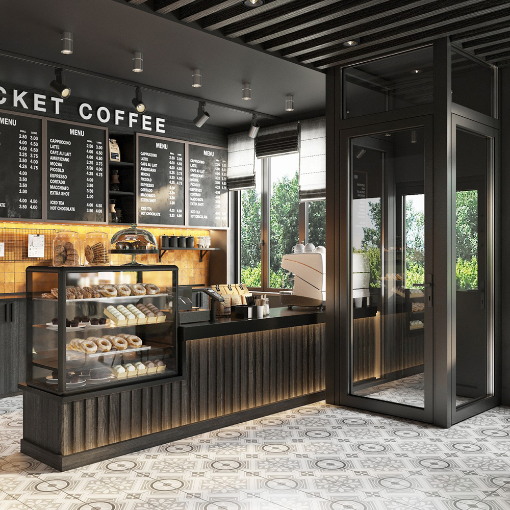 設計師在桌椅設計中,舍棄了許多繁瑣的設計語言,簡單的幾何造型在精準比例的控制下,展現出了強有力的力量感。過道之間吸音棉材質的橢圓椅子與不銹鋼的材質沖突下,視覺反饋上減少了它的存在感。桌椅的設計更加簡約和概括了造型語言和材質。讓顧客落座后更加關注產品本身。自助臺更像是一個黑匣子,吸附在長桌上,強調了它的存在。